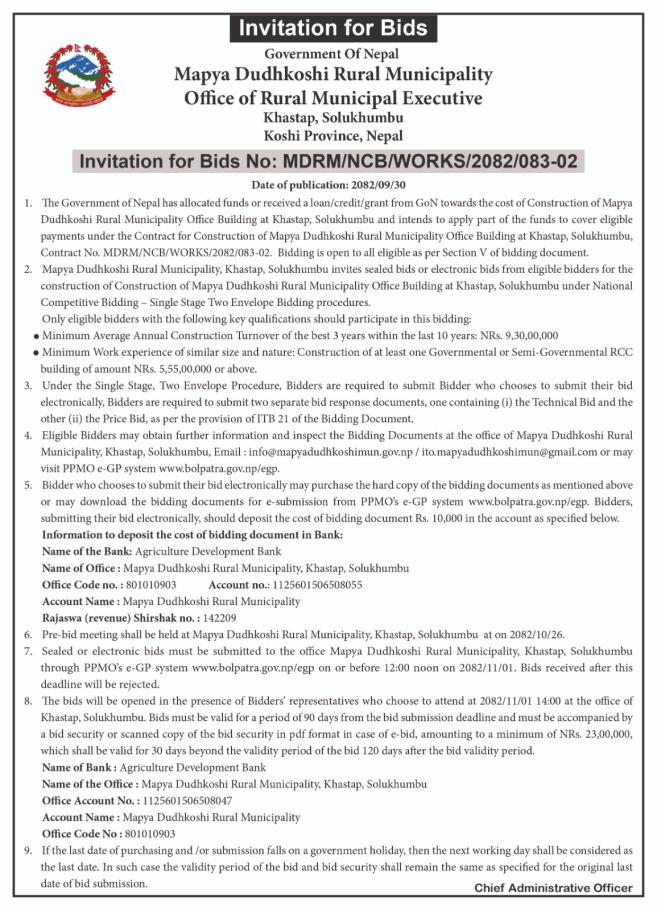 » बोलपत्र आव्हान( गाउँपालिका प्रशासनिक भवन निर्माण) सम्बन्धी सूचना